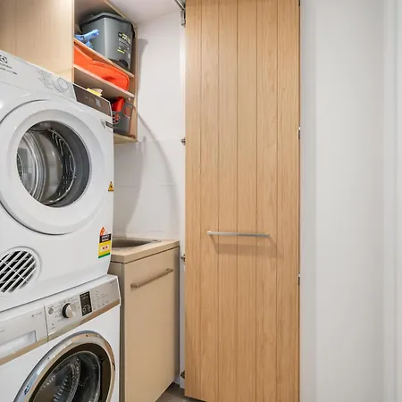 The apartment features views of the street and comprises a balcony and a kitchen equipped with air conditioning and a washing machine. At Experience Port Melbourne On Delightful Dow Street Apartment, guests will enjoy the convenience of a dryer and bath sheets in the bathroom. Moreover, there is a separate toilet and a shower as well.